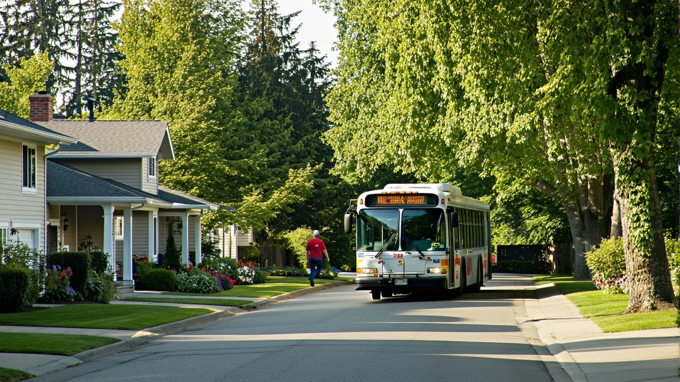 Public transit on a residential street in Battle Ground, Washington.