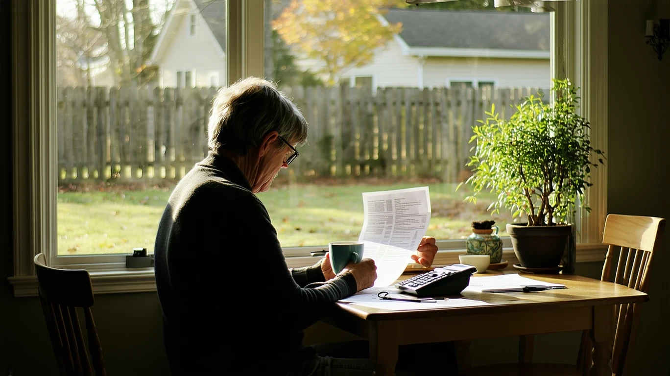 Person reviewing bills and budgeting at kitchen table in Clayton, North Carolina home.