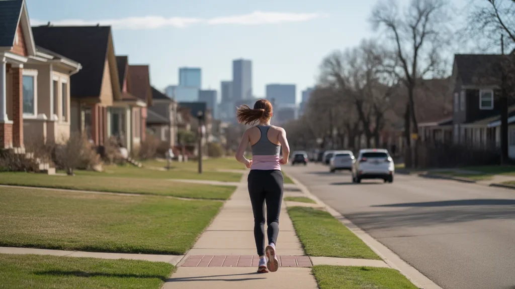 A peaceful morning jog through a suburban Commerce City neighborhood.