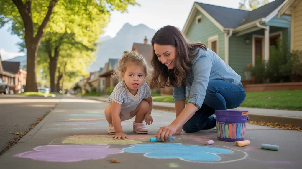 A quiet afternoon of chalk art captures the family-friendly vibe found in many Denver neighborhoods.