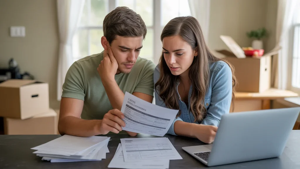 Couple reviewing utility bills and lease documents in Georgetown home
