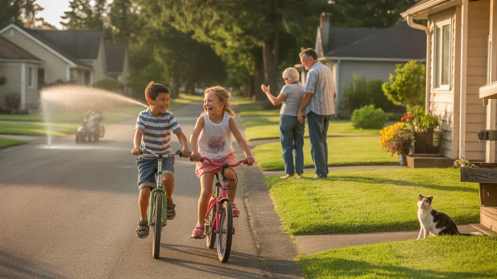 A warm summer evening in a Gresham neighborhood, where kids bike and neighbors connect — a slice of the city’s family-friendly suburban life.
