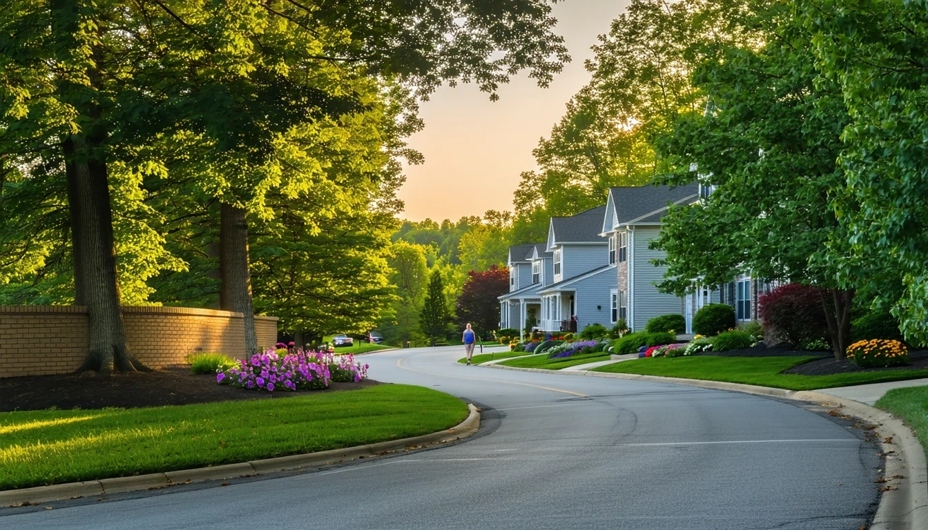 A peaceful suburban street in King Of Prussia on a sunny morning.