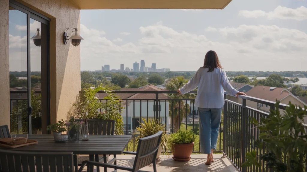 Person on apartment balcony in Lakeland, FL looking at skyline