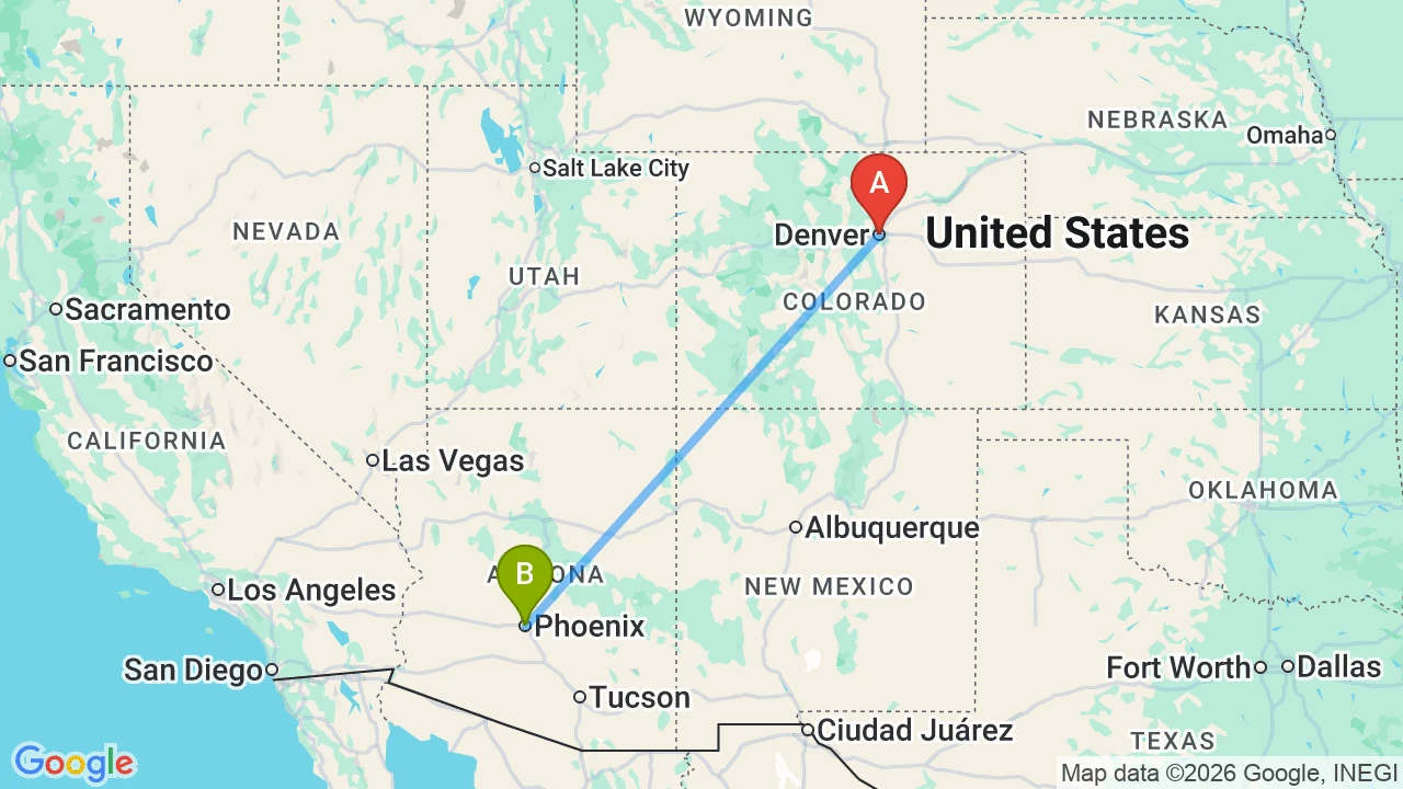The Denver-to-Phoenix move is straightforward logistically: a roughly 12-hour drive or a 90-minute flight, with frequent moving truck routes and competitive pricing due to high corridor volume. Most movers choose late fall through early spring to avoid Phoenix’s summer heat and Denver’s winter storms. Summer moves are cheaper but physically taxing in Phoenix, where unloading a truck in 110°F heat is miserable.