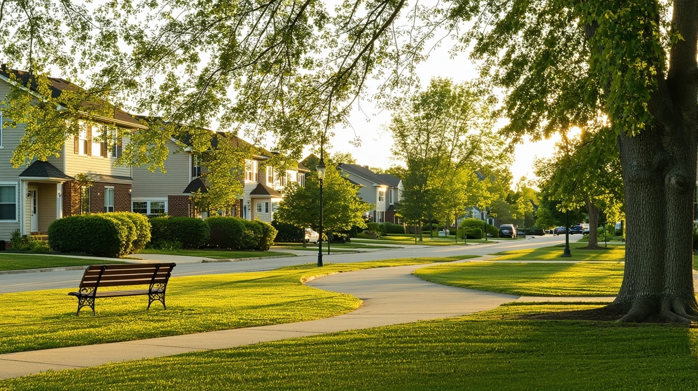 A tranquil neighborhood park in Westerville surrounded by well-kept homes.